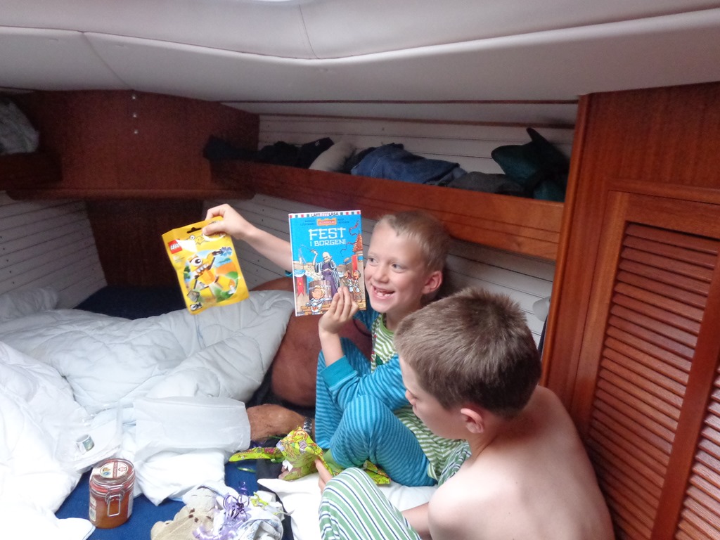 Idag fyller Mormor år så hon väcks med skönsång från Meas ordinarie besättning. Elis kommer fylla år och uppvaktades lite lätt idag också med en ny bok och legogubbe.